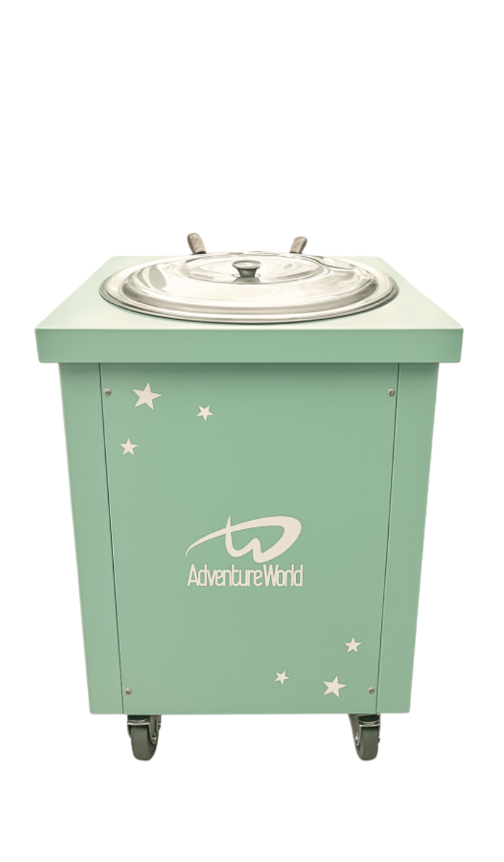 ماكينة آيس كريم رول بـ 4 نكهات لذيذة (فانيليا، شوكولاتة، مانجو، فراولة) تُحضّر بطريقة استعراضية قدام الضيوف! مثالية للجمعات والمناسبات، تكفي أكثر من 40 شخص، مع إضافات مميزة (لوتس، اوريو، فيوتين، بستاشيو، سبرنكل). تصميم أنيق، تأجير يومي مع توصيل لأي مكان. الحجم: 60×60×75 سم. يتطلب: توفير فيش كهرباء 220 فولت.