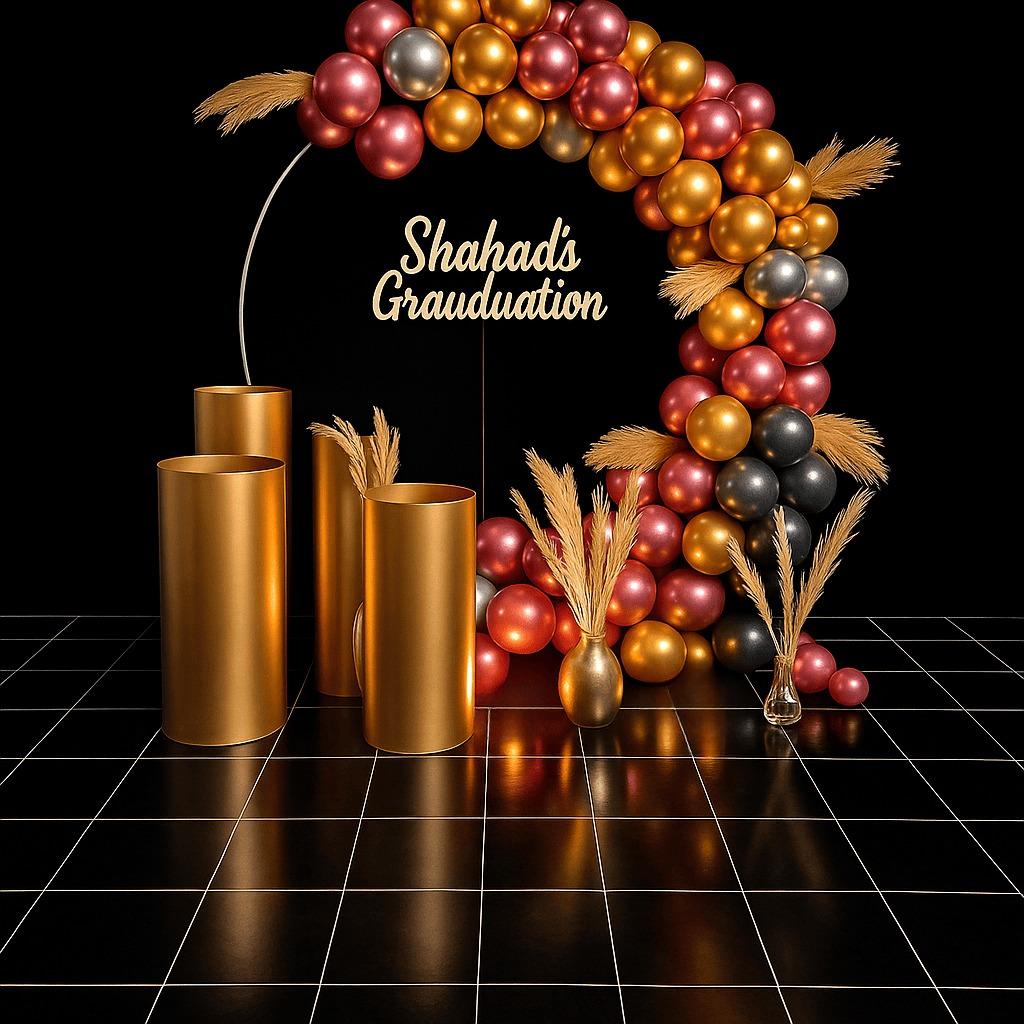 فريم دائري مع عبارة مخصصة، قوس بالون مزين بالورد، طاولة أكريليك