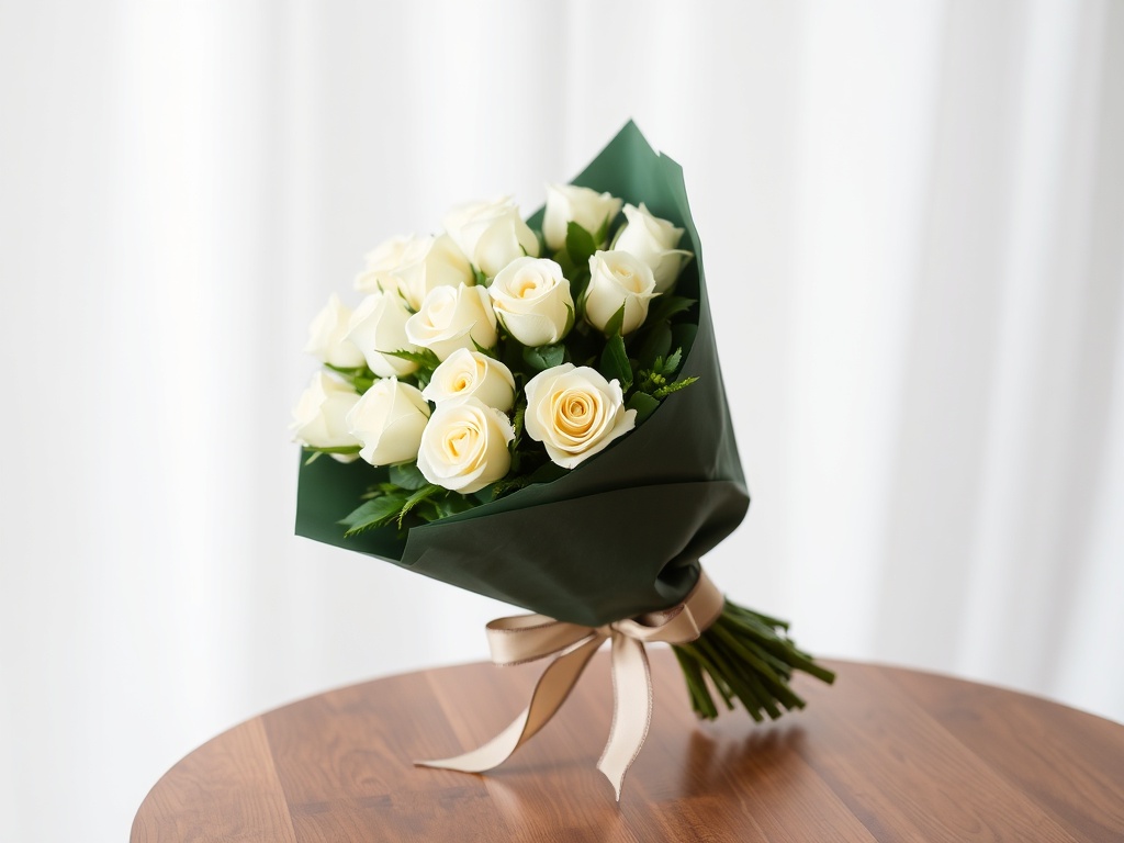 باقة 12 وردة من الجوري الابيض بي تغليف زيتي