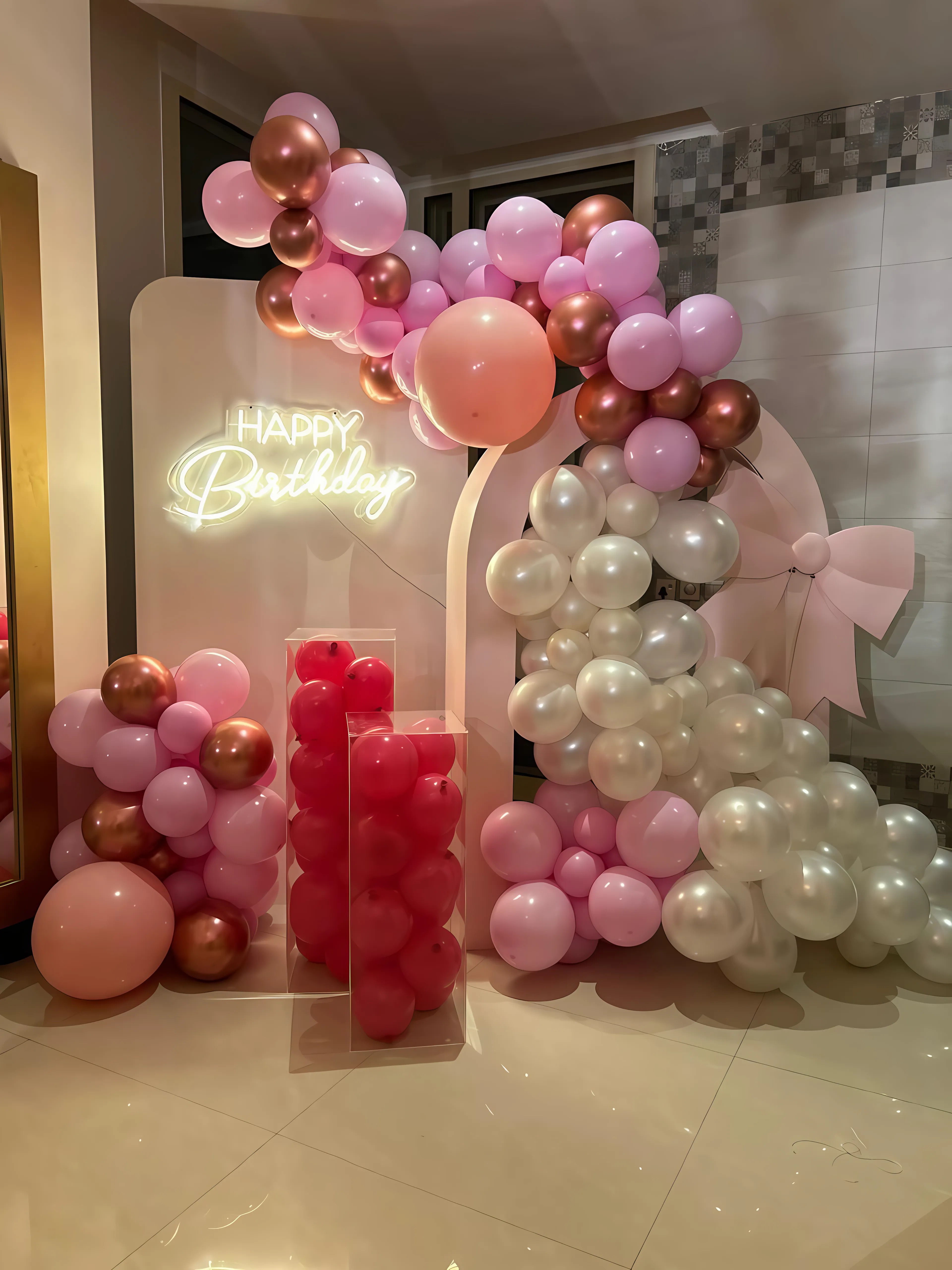 خلفية، عبارة مضيئة، قوس بالون، طاولة كيك
