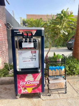- ماكينة ايس كريم مع اختيار نكهتين حسب الرغبة - مدة الخدمة ٤ ساعات - يتطلب توفير كهرباء