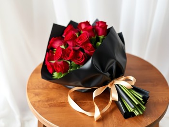 باقة 12 وردة من الجوري الاحمر بي تغليف اسود