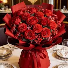 بوكيه ورد جميل يضم تشكيلة من الزهور المنسقة بعناية، مثالي للهدايا والمناسبات الخاصة.