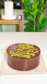 كيكة الفستق مع طبقات تشيز الكريم بحشوة الفستق مع قطع الفيوتين المقرمشه