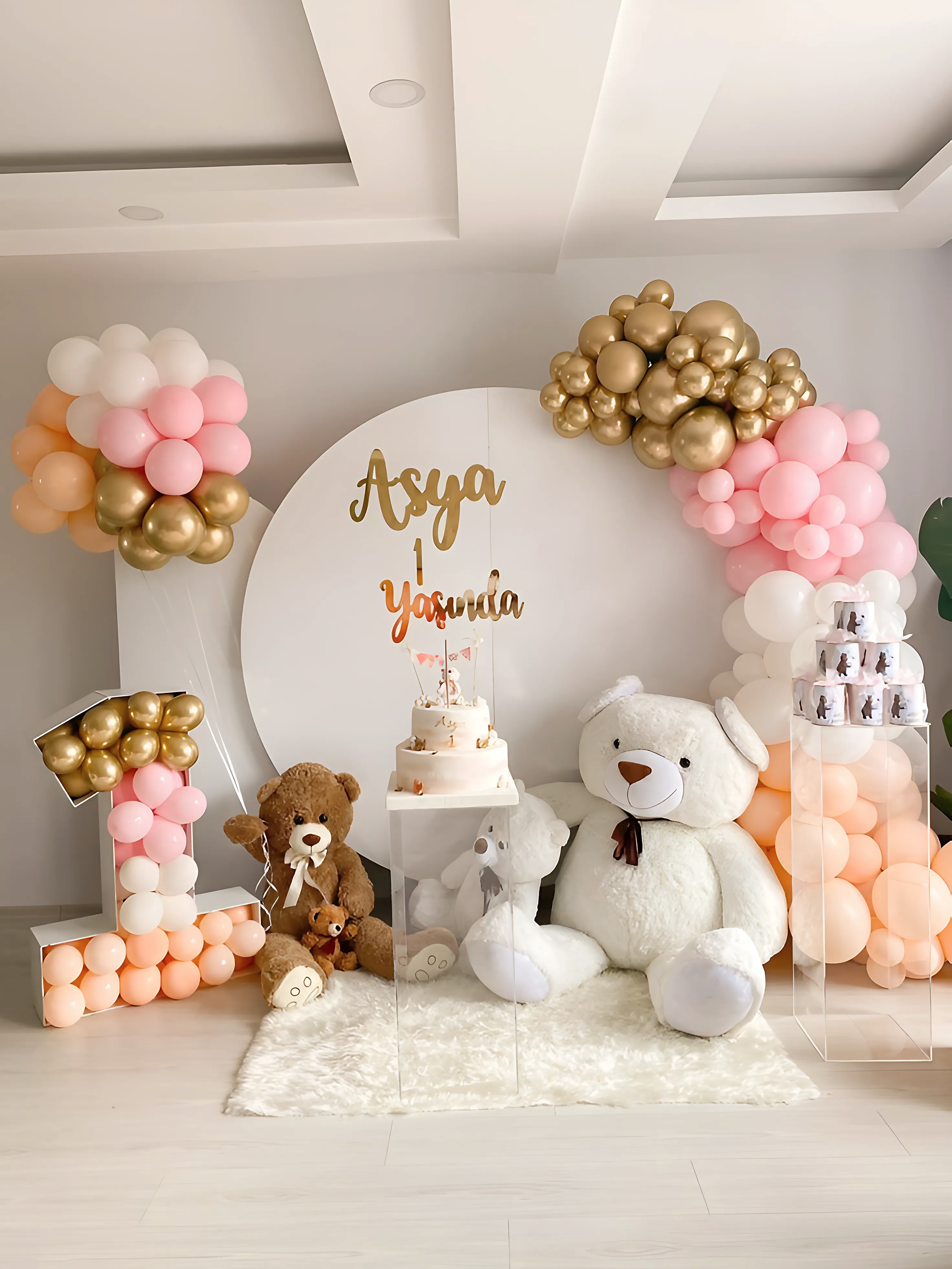 خلفية دائرية، قوس بالون، طاولة كيك