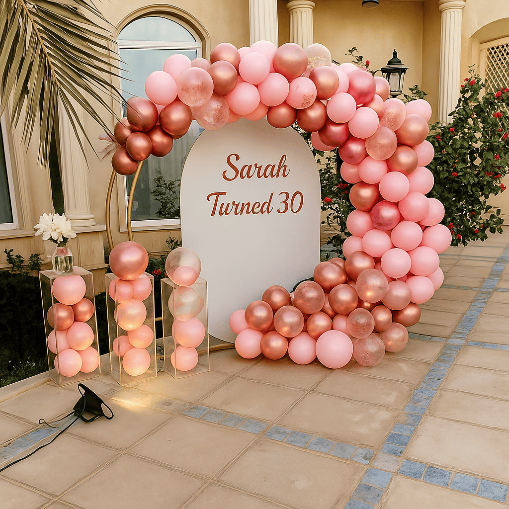 فريم دائري، قوس بالون، لوحة مع اسم، طاولة كيك