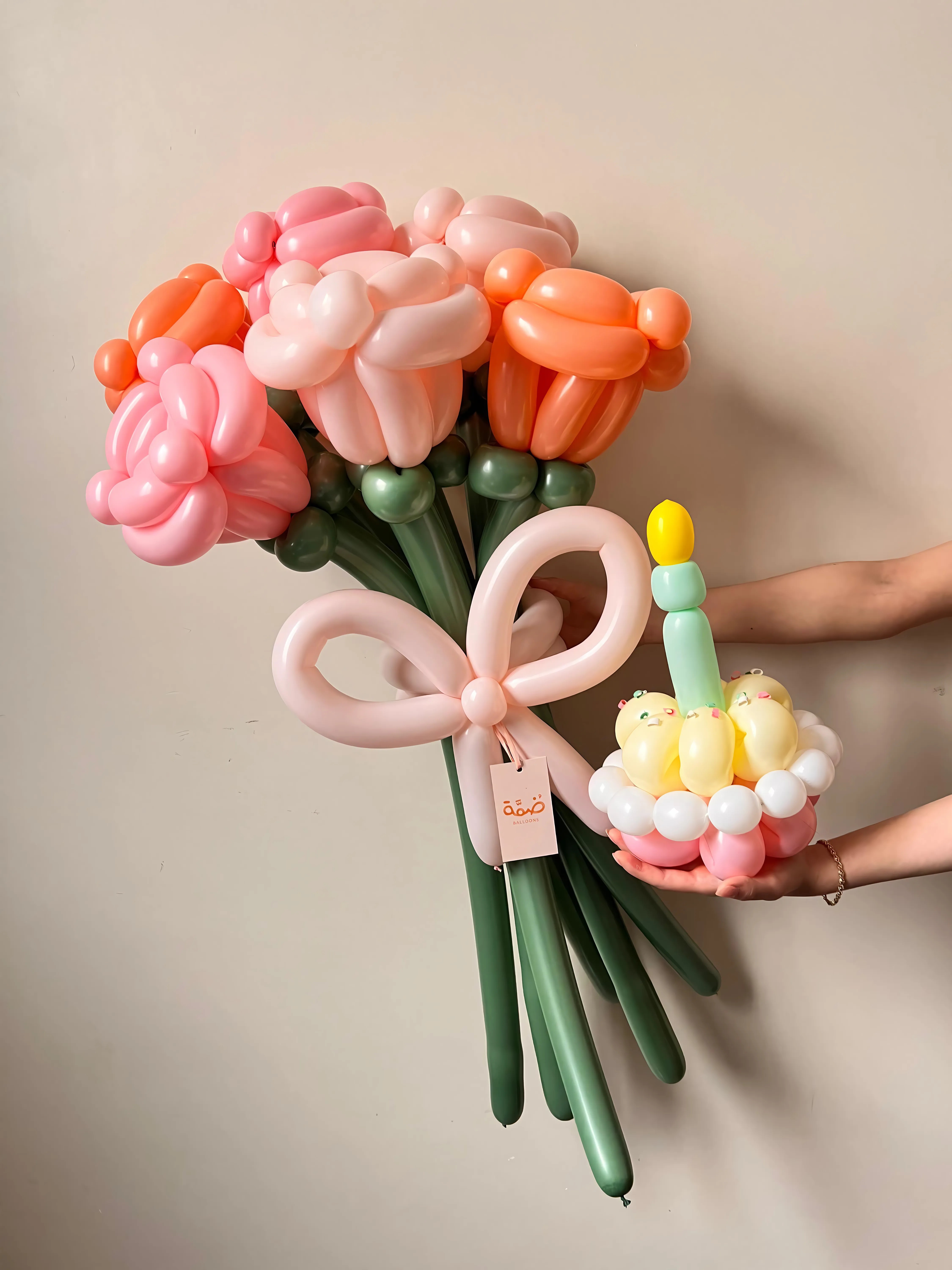 باقة زهور مبتكرة ومبهجة مصنوعة من البالونات الملونة تضفي لمسة إبداعية على أي مناسبة.