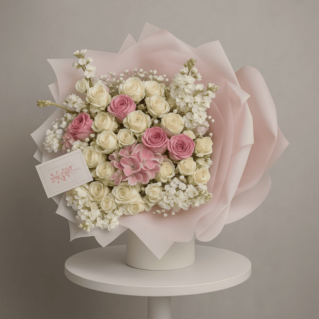 باقة ورود طبيعية ذات ألوان هادئة ، مثالية كهدية للتهنئة والمناسبات يتوفر كتابة كرت باللغة العربية والإنجليزية، الرجاء كتابة المطلوب طباعته في الملاحظات
