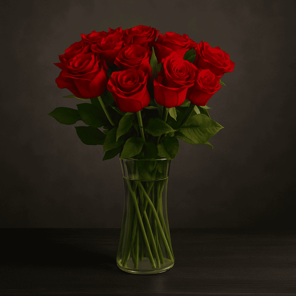 - 25 وردة حمراء - مزهرية زجاجية اسطوانية