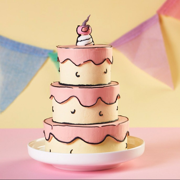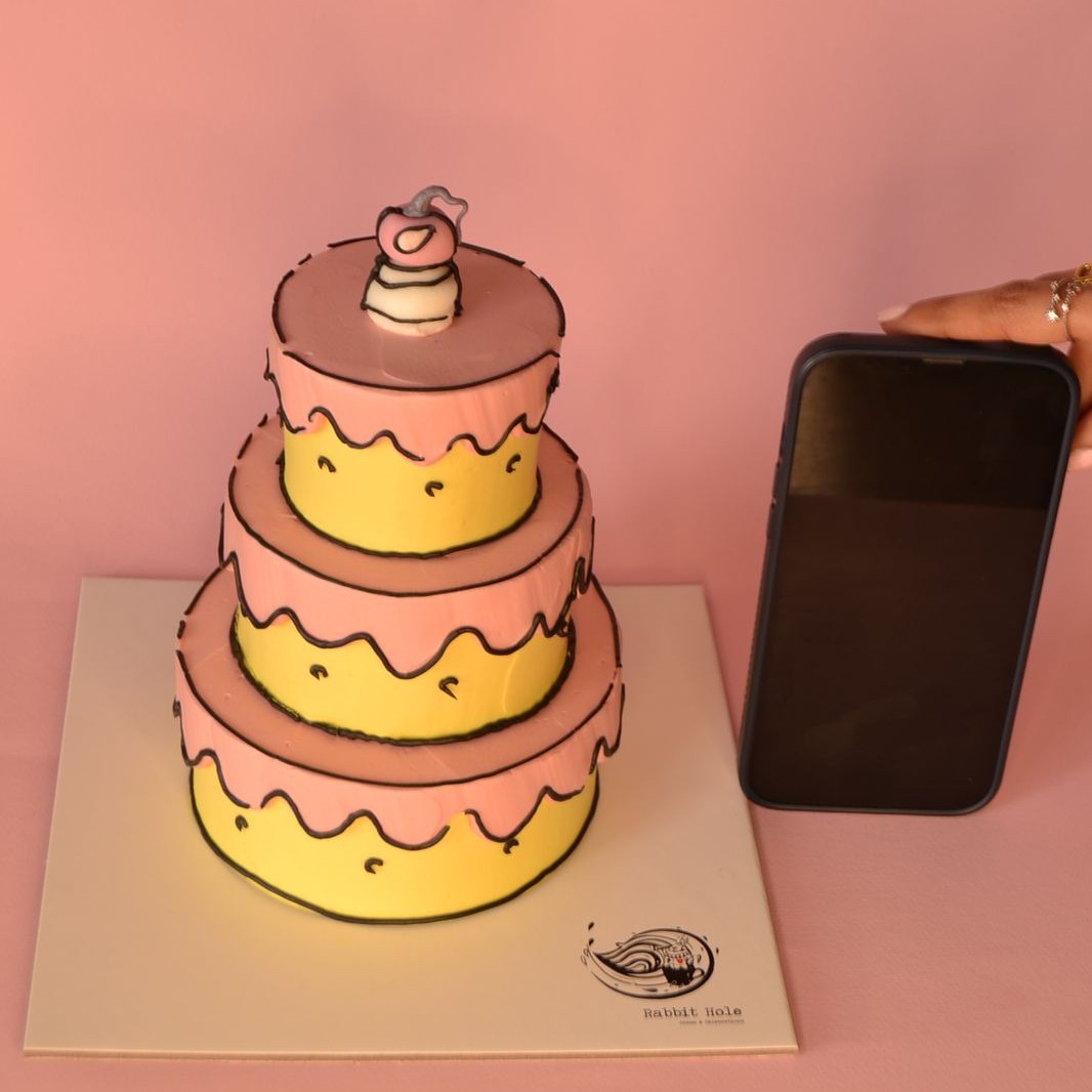 كيكة مكونة من ٣ طبقات لوني الكتابة على كارد فقط (٣ كلمات كحد أقصى) ملاحظة: راجع الصورة لمقارنة الأحجام