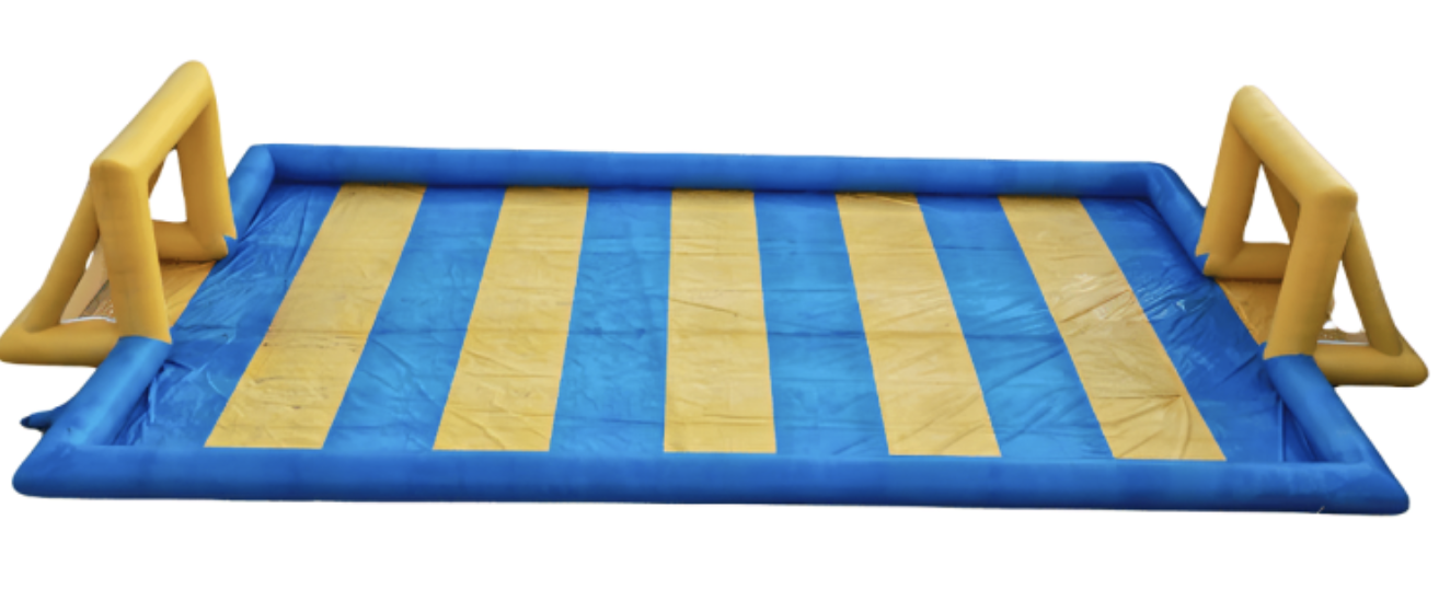 ملعب كرة قدم مائي قابل للنفخ بتصميم مخطط، يمنح تجربة لعب فريدة وممتعة. **الأبعاد:** * الطول: 20 متر * العرض: 10 أمتار * الارتفاع: 2 متر