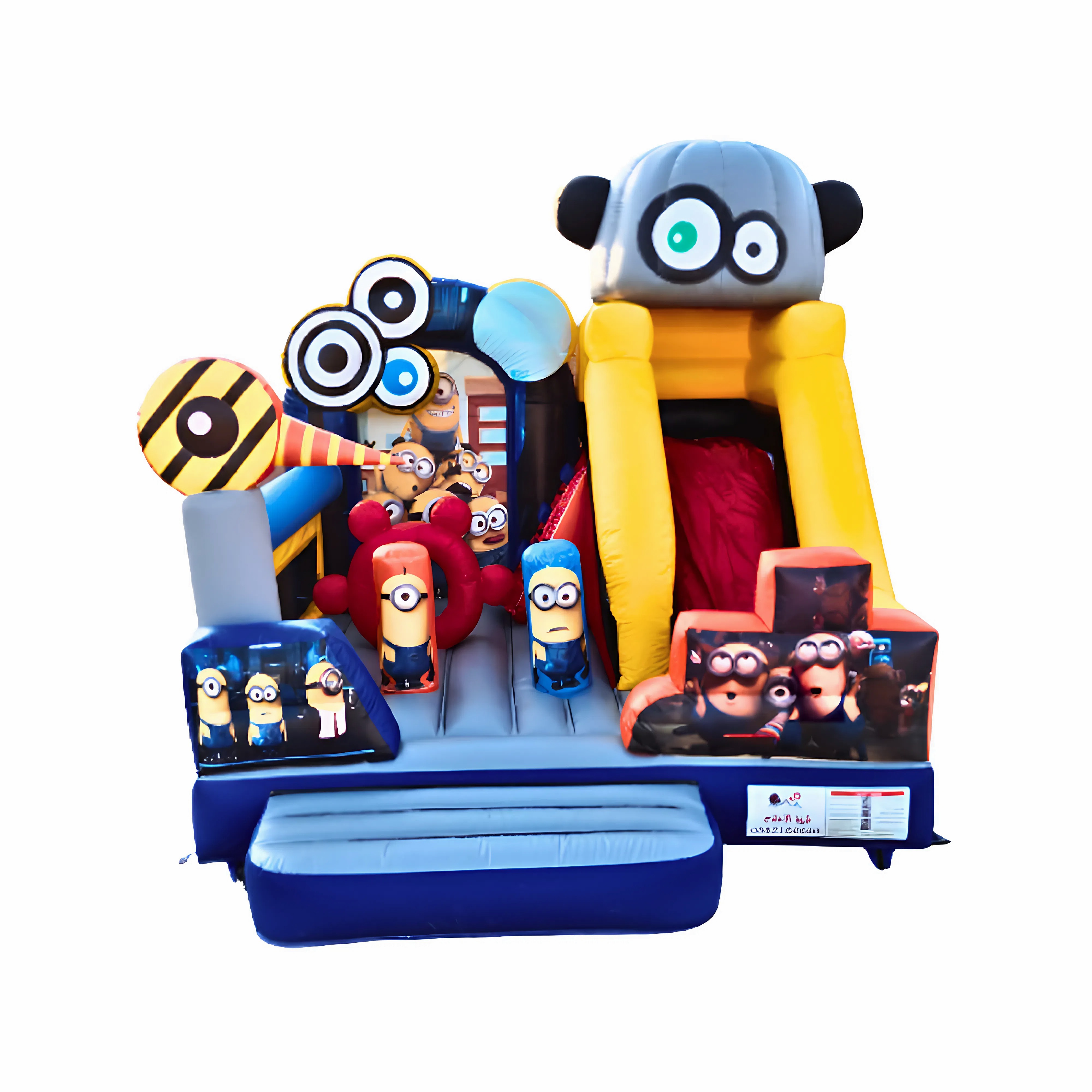 نطيطة المينيونز بتصميم ممتع مستوحى من الشخصيات المحبوبة، تحتوي على منطقة قفز وزحليقة جانبية لإضافة المزيد من المرح للأطفال. المقاسات: الطول 5 م × العرض 4 م × الارتفاع 4 م