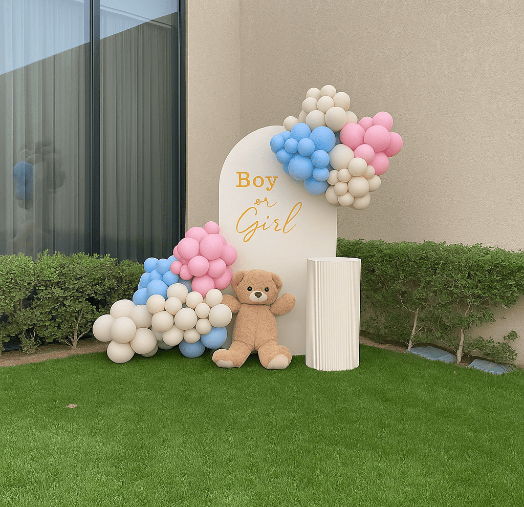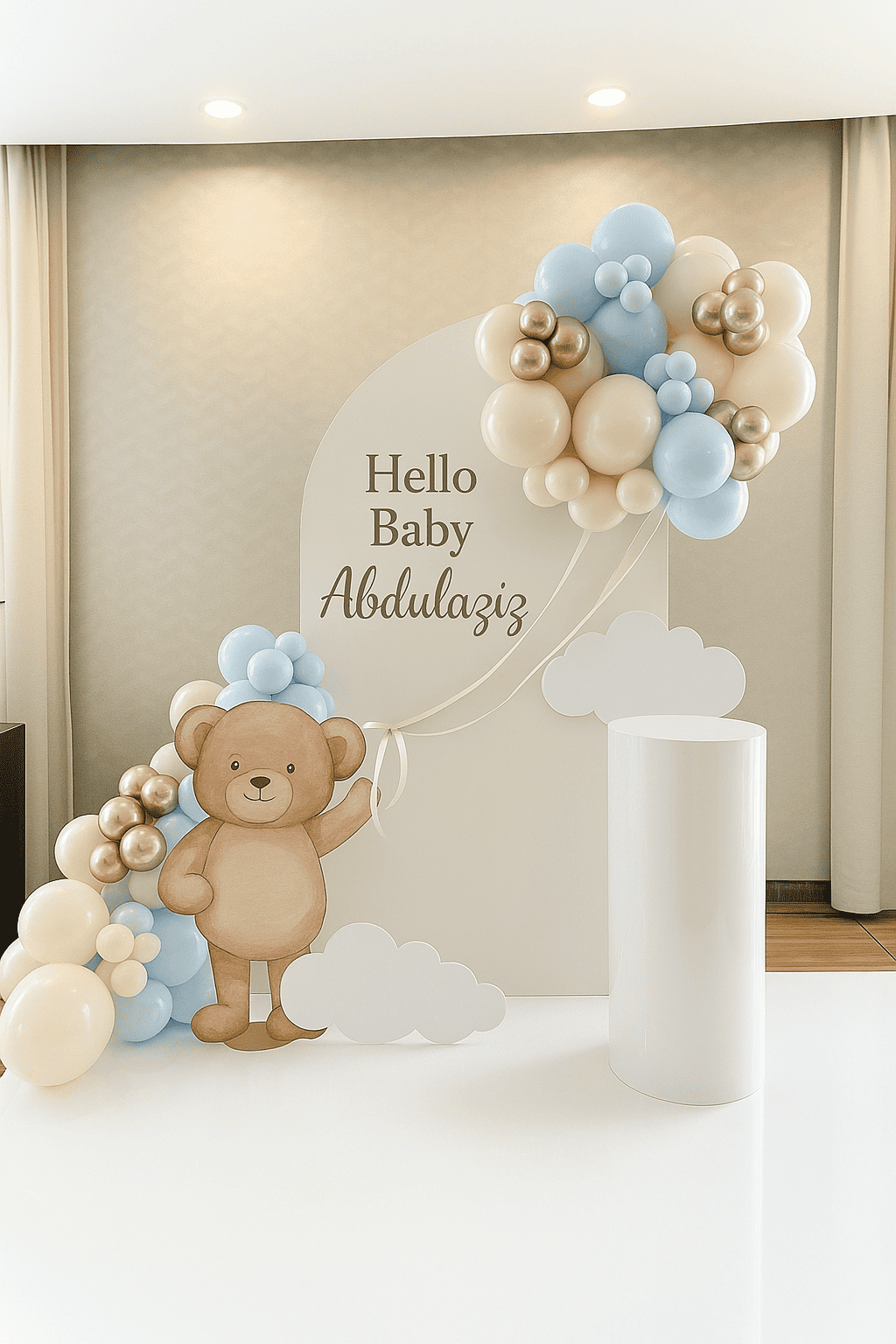 خلفية، باقة بالون، ستاند دبدوب مع بالون، غيمتين ديكور