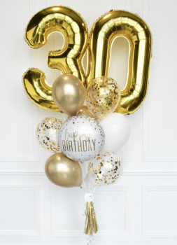باقة مكونة من 6 بوالين هيليوم 11انش مع رقمين قصديرهيليوم